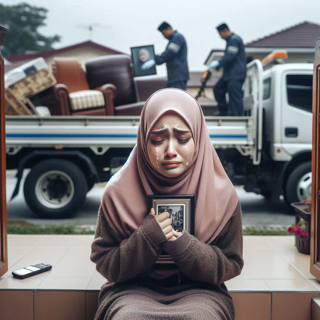 Kenderaan ditarik, barang dilelong. Semua kenangan jadi beban yang terpaksa dilepaskan.