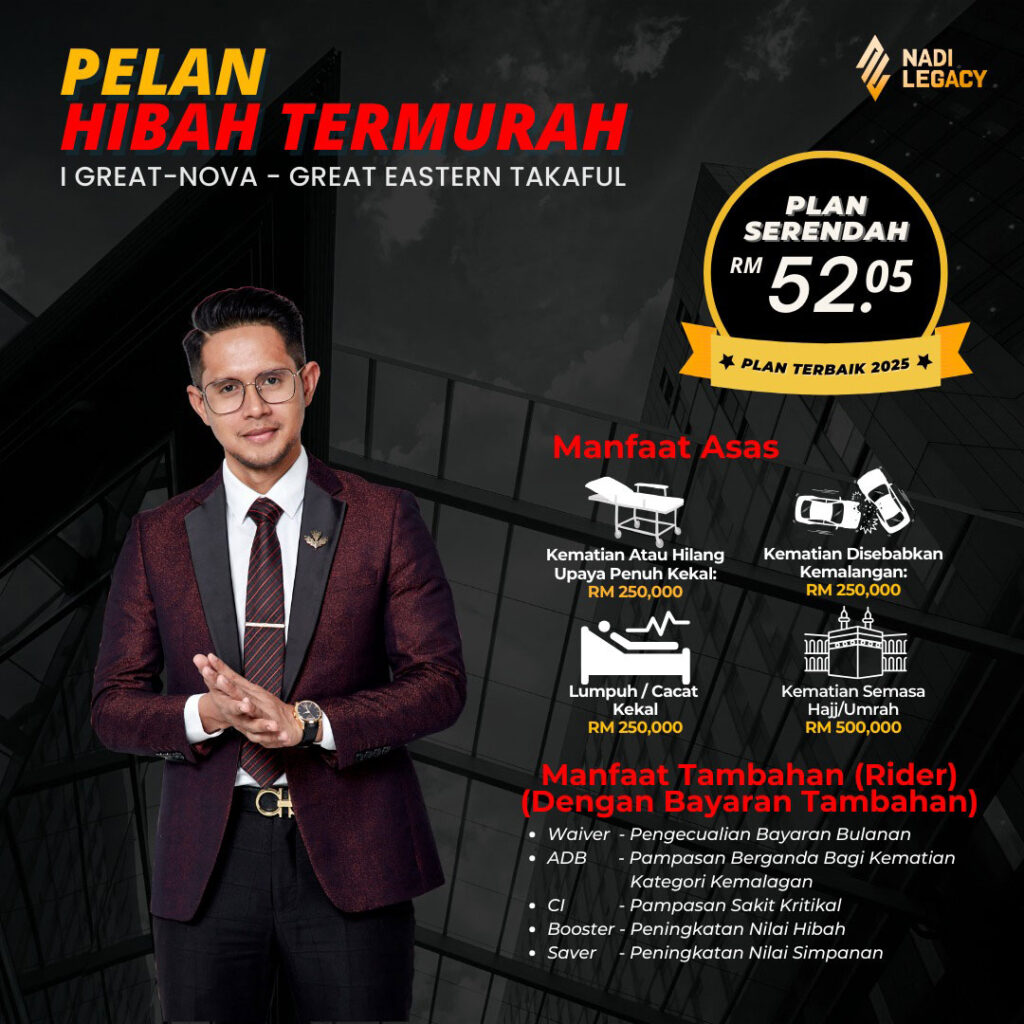 Hibah ni macam hadiah kasih sayang terakhir yang kita tinggalkan bila kita dah tiada. Ia adalah pampasan tunai yang diberikan terus kepada penerima yang kita pilih – tanpa perlu melalui proses faraid atau perebutan harta.